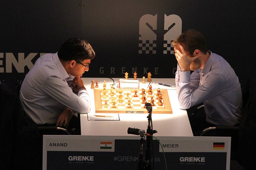Der indische Exweltmeister Anand hatte heute zweifellos nicht seinen besten Tag. Zunächst kam er mit seinen eigenen Angriffsambitionen nicht durch, dann agierte er in angespannter Lage nicht zielgerichtet genug. Nach dem Einschlag auf b2 hatte Georg Meier glänzende Gewinnaussichten, die nach einem weiteren Fehler Anands schneller als gedacht Realität wurden: