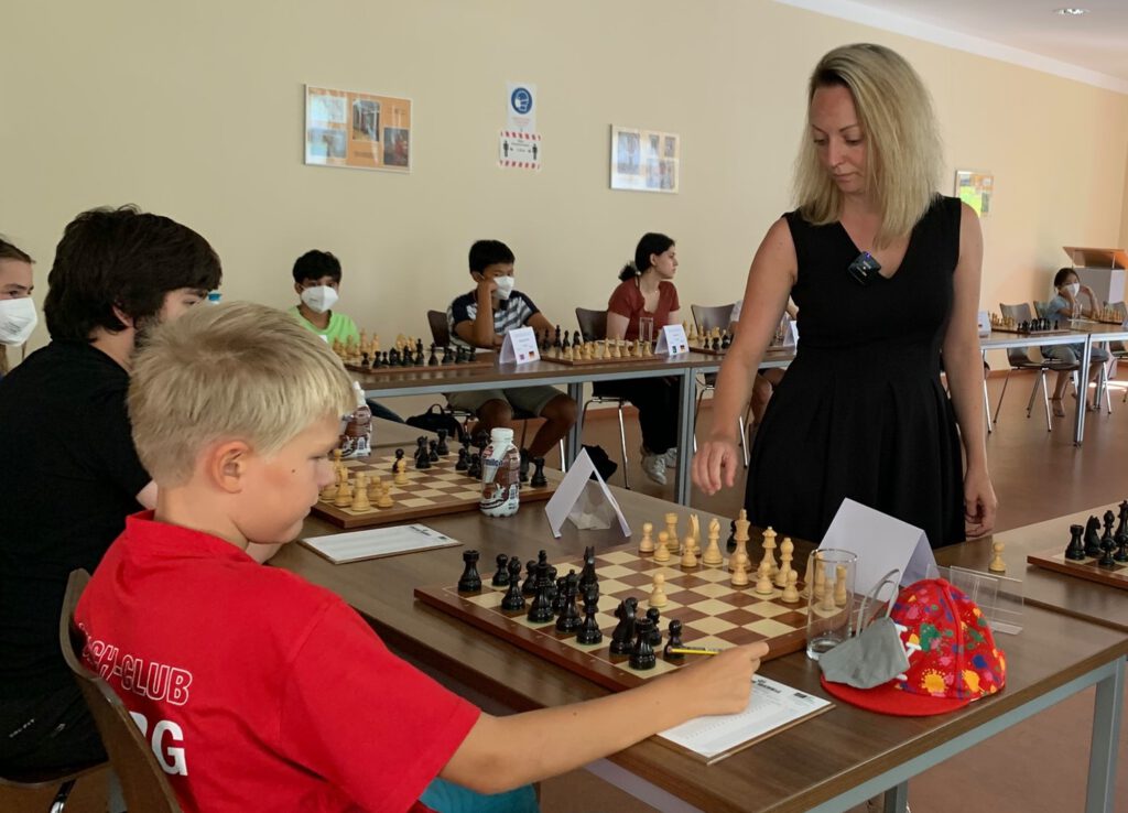 Am selben Ort fand am Samstagnachmittag auch ein Simultan von Deutschlands spielstärkster Großmeisterin Elisabeth Pähtz gegen eine international besetzte Auswahl von 20 Kindern und Jugendlichen statt. Dem Schachclub Kreuzberg war es dabei gelungen, Spielerinnen und Spieler aus 15 Nationen zu gewinnen, die der Großmeisterin alles Können abverlangten. Mit zwei Niederlagen, drei Remisen und 15 – oft hart umkämpften – Siegen begeisterten die Partien die Zuschauer, die aufgrund der Pandemie leider nur unter strengen Auflagen „kiebitzen“ konnten.