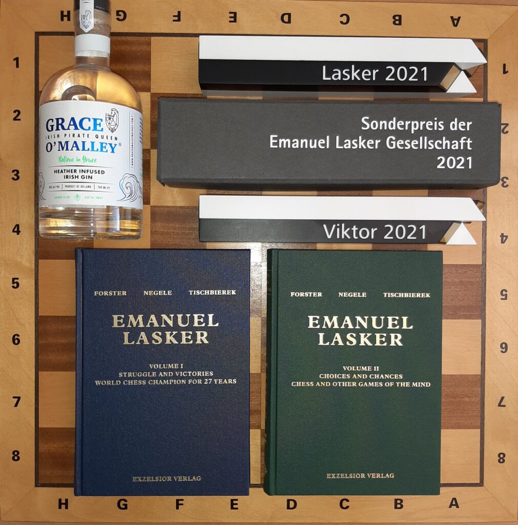 Damit erinnerte Thomas Weischede zugleich daran, dass das für 2020 geplante Event in Galway – damals eine der Kulturhauptstädte Europas – pandemiebedingt ausfallen musste und hoffentlich in 2022 zusammen mit dem Goethe-Institut nachgeholt werden kann. 2020 sollte der zweite Band der neuen Lasker-Trilogie vorgestellt werden. 2022 erscheint der dritte und letzte Band, der dann Mittelpunkte des gemeinsamen Events mit dem irischen Schachfreunden sein soll.