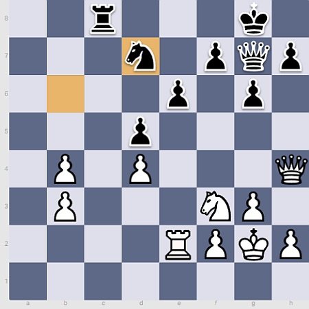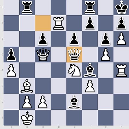 25.Txf4 Dxf4 26.Bxe6 und Mihai Bursuc gab sofort auf. Nach 26...fxe6 besetzt die weiße Königin den "siebten Himmel": 27.Dd4+ e5 28.Da7, mit einem unvermeidlichen Matt auf der 7. Reihe.