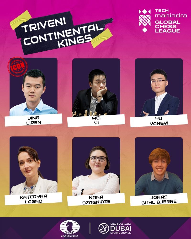Triveni Continental Kings - GM Ding Liren, GM Wei Yi, GM Yangyi Yu, GM Kateryna Lagno, GM Nana Dzagnidze und GM Jonas Buhl Bjerre