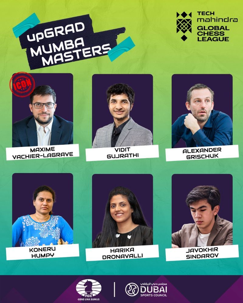 Upgrad Mumba Masters - GM Maxime Vachier-Lagrave, GM Vidit Gujrathi, GM Alexander Grischuk, GM Koneru Humpy, GM Harika Dronavalli und GM Javokhir Sindarov