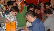 Bei der anschließenden Signierstunde waren auch die Programmierer sehr gefragte Idole und mussten viel Autogramme geben. Hier sieht man Matthias Feist und Chrilly Donninger mit Geräten schreiben, die sie sonst eher selten in die Hand nehmen