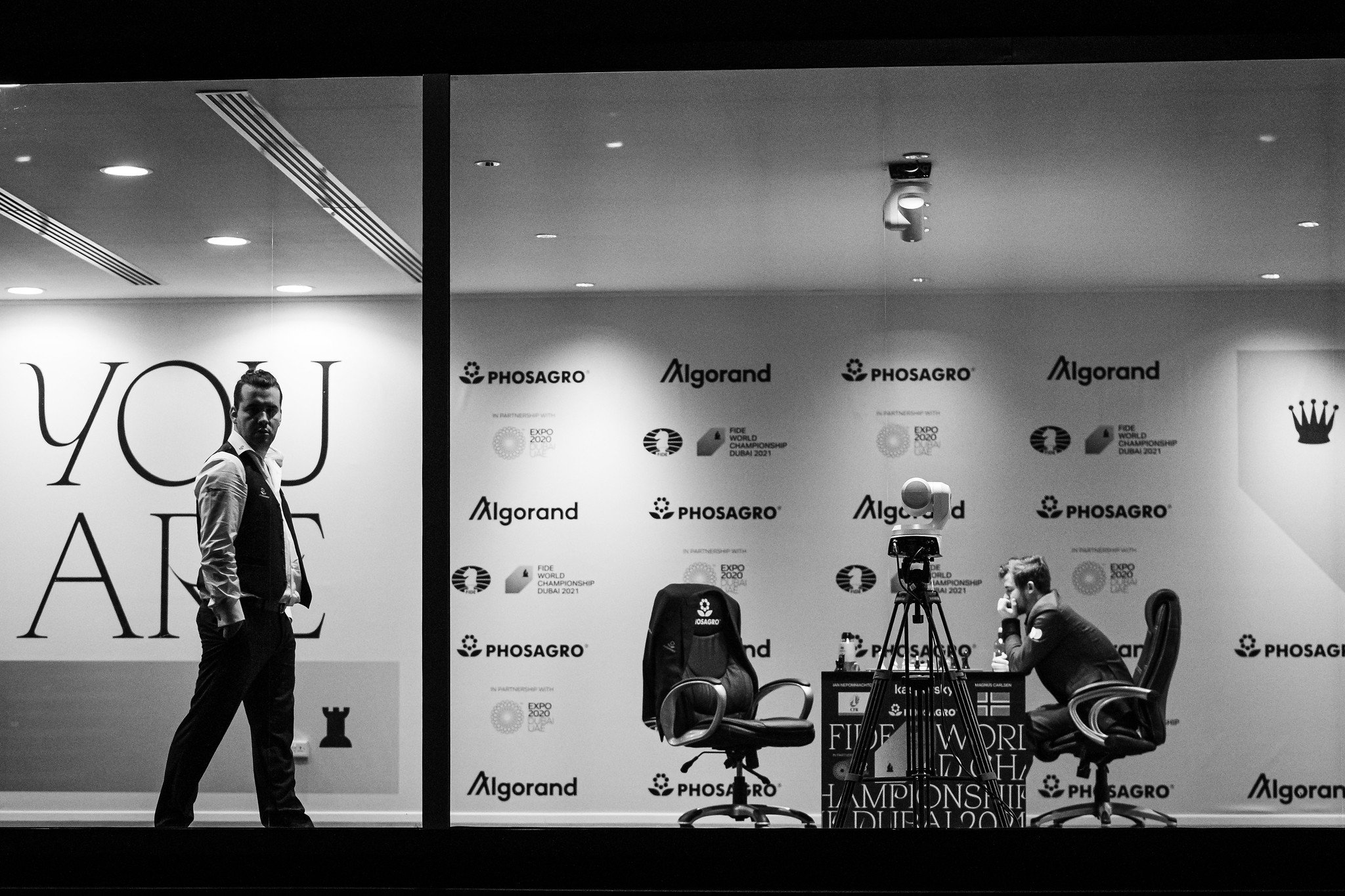 - Leider war die Situation unvermeidlich. Auf der Expo2020 jagte ein Ereignis das andere. In diesem Pavillon fand eine weitere Veranstaltung statt. Wir hatten den Pavillon erst drei Tage vor der ersten Runde zur Verfügung. Wir haben versucht, Alternativen zu finden, aber wir konnten nichts tun. Es waren einfach keine anderen Räumlichkeiten verfügbar. Obwohl der Raum selbst in jeder Hinsicht gut ist. Wir haben es geschafft, auch die Abschlussfeier dort durchzuführen, weil es nur elf Partien gab.