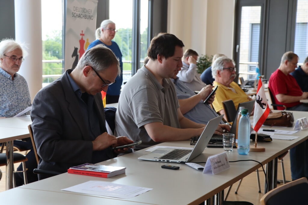 MSL: Also wie gesagt, in einer normalen Welt hätte es diesen zweiten Vorschlag gar nicht gegeben. Vielleicht kam die Wahl für das Präsidium überraschend. Es kam jedenfalls zu einer Kampfabstimmung und der Vorschlag der Präsidentin hat sehr glatt verloren. Dann musste Jürgen Klüners ein drittes Mal antreten. Das ist eine Besonderheit des Deutschen Schachbundes, der möchte drei Vertreter, die laut Satzung BGB-Vollmacht haben: der Präsident, also hier die Präsidentin, der Stellvertreter des Präsidenten und der Finanzchef. Wenn wie hier der Finanzchef quasi die stellvertretende Rolle kriegt, dann muss ein weiteres Mitglied aus dem Präsidium gewählt werden. Also musste Jürgen erneut gegen Jannik Kiesel ran. Als Ergebnis dieser überraschenden Abstimmungen kann man sagen, dass beim Deutschen Schachbund zukünftig die Macht mit Alexander von Gleich ist.