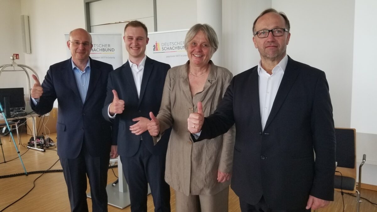 Das neue Präsidium, Jürgen Klüners, Jannik Kiesel, Ingrid Lauterbach, Alexander von Gleich. Foto: Deutscher Schachbund.