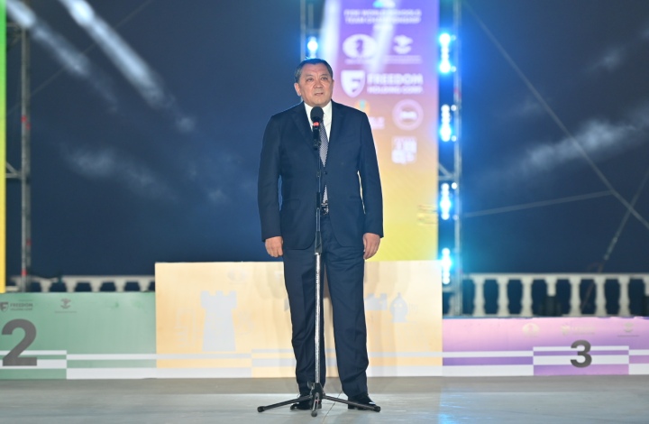Timur Turlov, der Präsident des kasachischen Schachverbands, wandte sich an das Publikum: "Heute haben sich Dutzende von Mannschaften aus mehr als 50 Ländern in dieser Halle versammelt. Dies ist ein klares Zeichen für die unglaubliche Popularität der Schachbewegung in der ganzen Welt und den Einfluss Kasachstans auf die globale Schachagenda. Ich bin davon überzeugt, dass dieses Turnier für Hunderte von jungen Schachspielern zum Ausgangspunkt ihrer Karrieren wurde und es Ihnen ermöglicht hat, neue Freunde und Gleichgesinnte zu finden, die Schönheiten von Aktau zu genießen und die kasachische Kultur besser kennenzulernen."