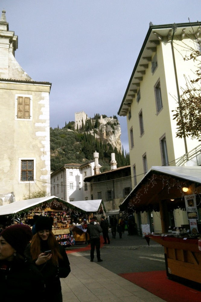 Ein Blick in die Altstadt und dahinter thronend die Burg von Arco