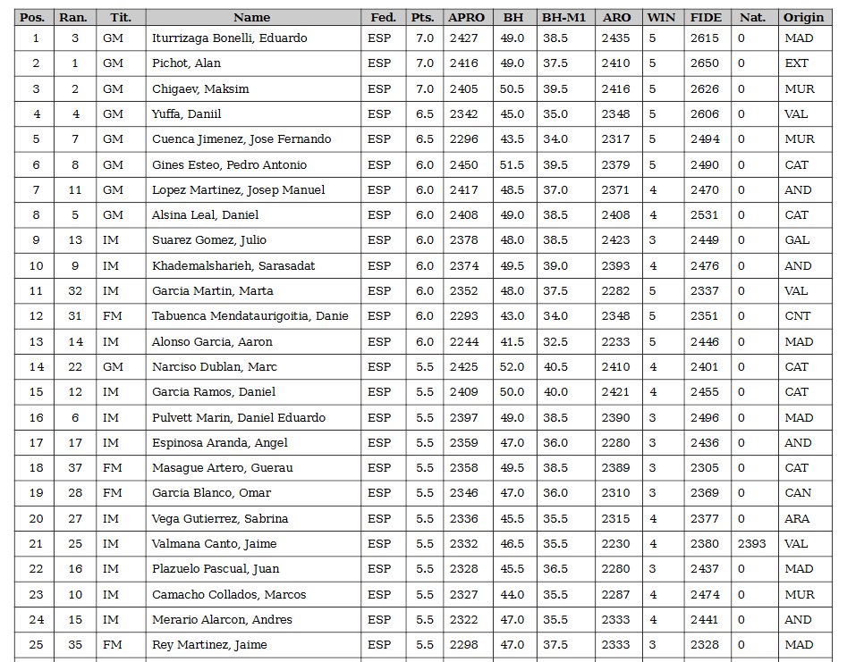 Alle drei Partien an den Spitzenbrettern endeten remis, so dass die Führenden auf 7/9 kamen, aber Eduardo Iturrizaga gewann den Titel dank der besseren Buchholz.