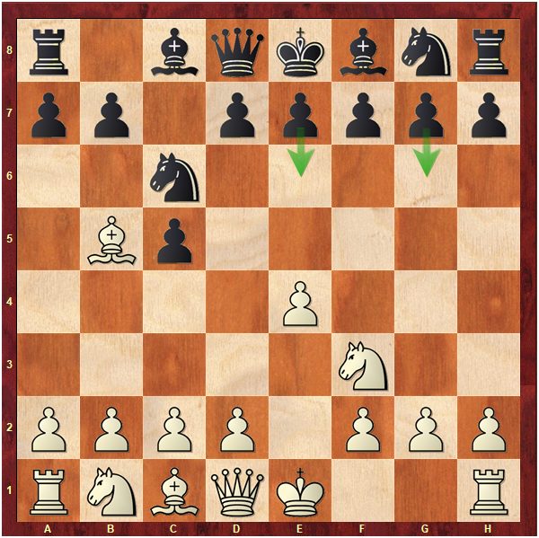3..e6 4.Bxc6 bxc6 5.d3 Ne7 6.h4 h5 7.e5 f6