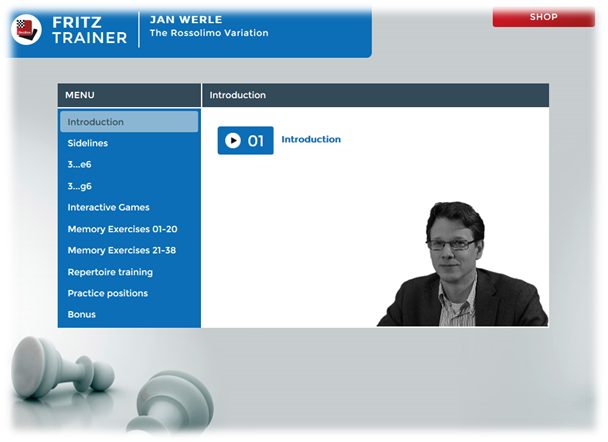 Die DVD bietet neben den theoretischen Kapiteln auch zahlreiche Möglichkeiten, das hier besprochene Repertoire zu trainieren. Dazu gibt es nicht nur einen Abschnitt mit Musterpartien, sondern auch mit einen mit Übungsstellungen, die gängige taktische Motive und Pläne abdecken und mit denen man das Verständnis um die Stellungen vertiefen kann. Darüber hinaus gibt es zudem noch einen Abschnitt, in welchem man mit Hilfe des Online-Trainers die verschiedenen auf der DVD besprochenen Varianten einspeisen und gegen den Computer trainieren kann. Entweder im Drill-Format oder aber gemächlich in ruhigem Tempo, in dem der PC die Varianten langsam durchspielt bzw. den Spieler selbst dazu anregt, den nächsten Zug in der Variante zu finden. Dadurch kann man sein eigenes Gedächtnis schulen und die verschiedenen Varianten memorieren. Wem das nicht genügt, dem stehen zudem noch einige Gedächtnisübungen (memory exercises) zur Verfügung, die alle aus dem theoretischen Material stammen. Hierbei geht es darum, sein eigenes Gedächtnis bzw. die Mustererkennung zu trainieren, um gängige Stellungstypen schnell wiederzuerkennen und die dort besprochenen Pläne abrufen zu können.