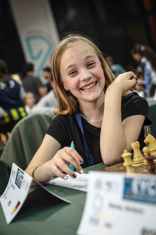 Vera Vujovic (SRB) und Blanka Ejsymont (POL) starteten mit einer perfekte Serie und teilen sich die Führung in der Kategorie Mädchen U14 mit jeweils 5/5 Punkten – in Runde 6 kommt es zum direkten Duell der beiden.