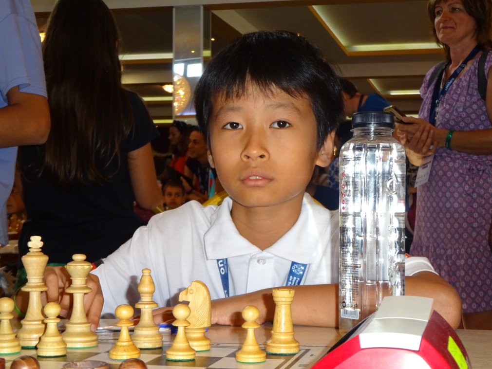 Er ist mit seiner Elozahl von 2300 (als Zwölfjähriger!) Nummer zwei der Setzliste in dieser Gruppe und wird seiner Mitfavoritenrolle bisher gerecht. In Runde sieben bezwang er mit Schwarz den Türken Umut Anil Dogan und liegt nun mit einem halben Punkt Rückstand auf die beiden Führenden auf Platz vier.