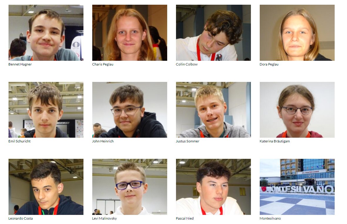 Die deutsche Delegation ist besonders stark in der Altergruppe U16 vertreten, sowohl quantitativ wie qualitativ. FM Marius Deuer ist mit seiner Elozahl die Nummer vier in der Startliste der offenen Gruppe, Leonardo Costa die Nummer sieben. Bennet Hagner, der kürzlich das Berlin U25-Open gewann, und John Heinrich vertreten in dieser Gruppe ebenfalls die deutschen Farben und werden in der Startliste auf Platz 13 bzw. Platz 32 geführt.