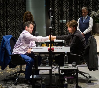 Levon Aronian und Gukesh D gingen in ihrer direkten Begegnung in der letzten Runde auf Nummer Sicher. Mit einem Sieg hätten sich beide den alleinigen Turniersieg sichern können, doch beide hatten nichts gegen ein schnelles Remis, um so zumindest auf dem geteilten ersten Platz zu landen und in einem Stichkampf auf das Beste hoffen zu können. So endete ihre Partie nach nur 18. Zügen mit einem farblosen Remis.