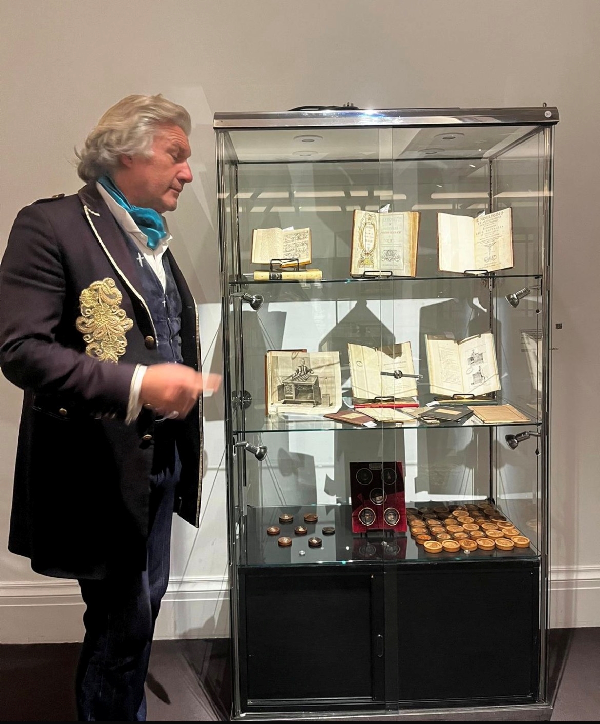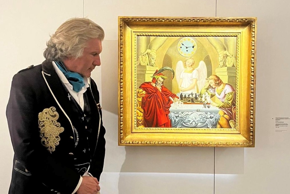 Der englische Musiker und Komponist Jason Kouchak, ein großer Schachliebhaber, war ebenfalls zu der Veranstaltung eingeladen und hatte Gelegenheit die Ausstellung zu bewundern.