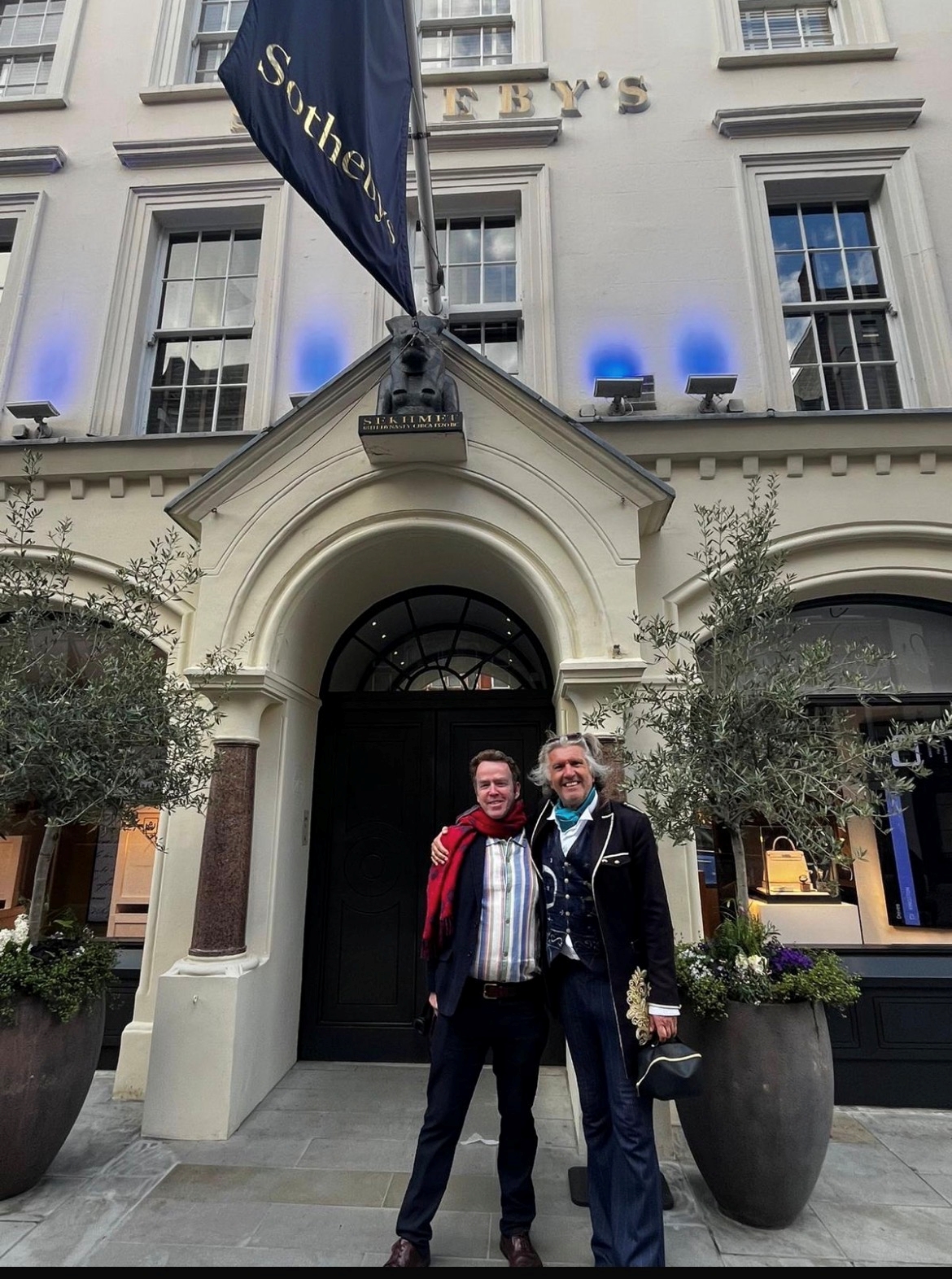 Jason Kouchak gratuliert seinem Freund Jonathan Rowson nach einem inspirierenden Abend im Auktionshaus Sotheby’s.