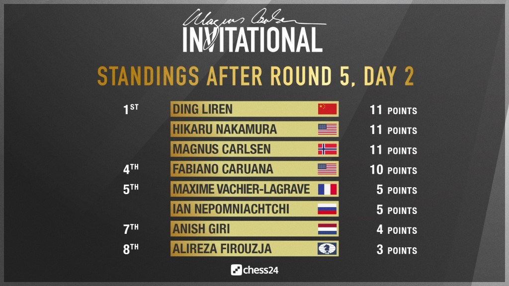 Magnus Carlsen kassierte zum Auftakt der 5. Runde seine erste Niederlage - gegen Anish Giri. Das war die Chance für die Verfolger, vor allem für Hikaru Nakamura Carlsen einzuholen oder vorbeizuziehen. Allerdings musste der Bitzschachspezialist dabei einen dicken Brocken aus dem Weg räumen - Fabiano Caruana.