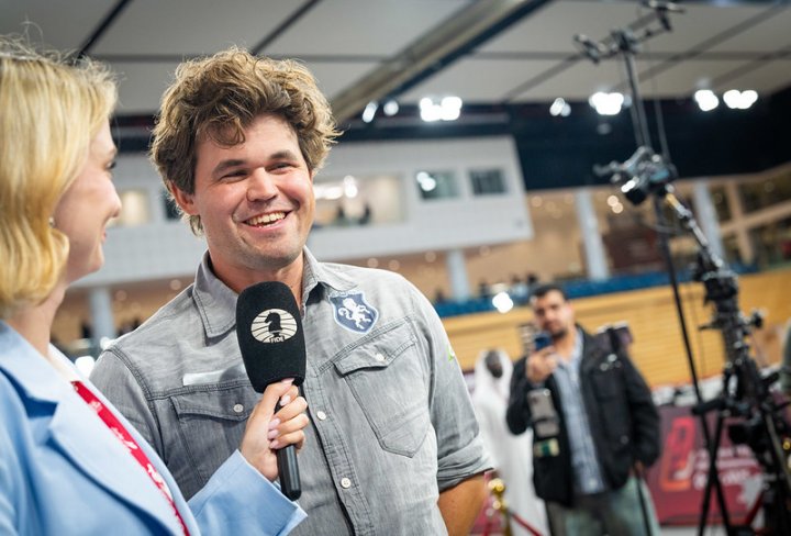 Ende gut, alles gut: Ein glücklicher Carlsen im Interview mit Charlize Theron. | Foto: Lennart Ootes