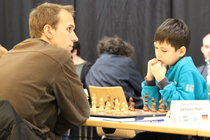 Hagen Poetsch liegt auf Rang 4 in der Verfolgergruppe – hier bei seinem Sieg gegen den kasachischen Nachwuchsspieler Rauan Bakhyt (Elo 1974). | Foto: Münsterland Open