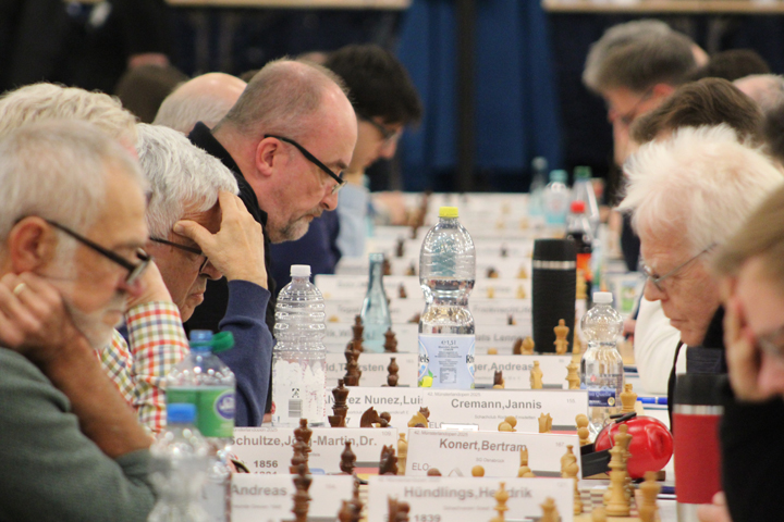 Keine Vorentscheidung gab es allerdings am Spitzenbrett zwischen Yi Liu und Aflatun Mamedov, die sich nach langem Kampf Remis einigten. Im Turmendspiel gelang es Mamedov, dem bislang punktverlustfreien Liu, der mit 2297 Elo lediglich auf Rang 5 gesetzt ist, sein erstes Remis abzuknöpfen. Liu liegt mit einem halben Punkt vor einem Verfolgerfeld mit sechs Spielern, die einen Punkt weniger auf dem Konto haben. Einder davon ist Anwesh, auf den Liu in Runde 7 trifft. Außerdem spielt Mamedov gegen Poetsch. Im Verfolgerfeld mit 5 Punkten ist auch Klaus Schmitzer vom ausrichtenden Verein, der in Runde 7 auf den hochgelosten Yonathan Winkler trifft.