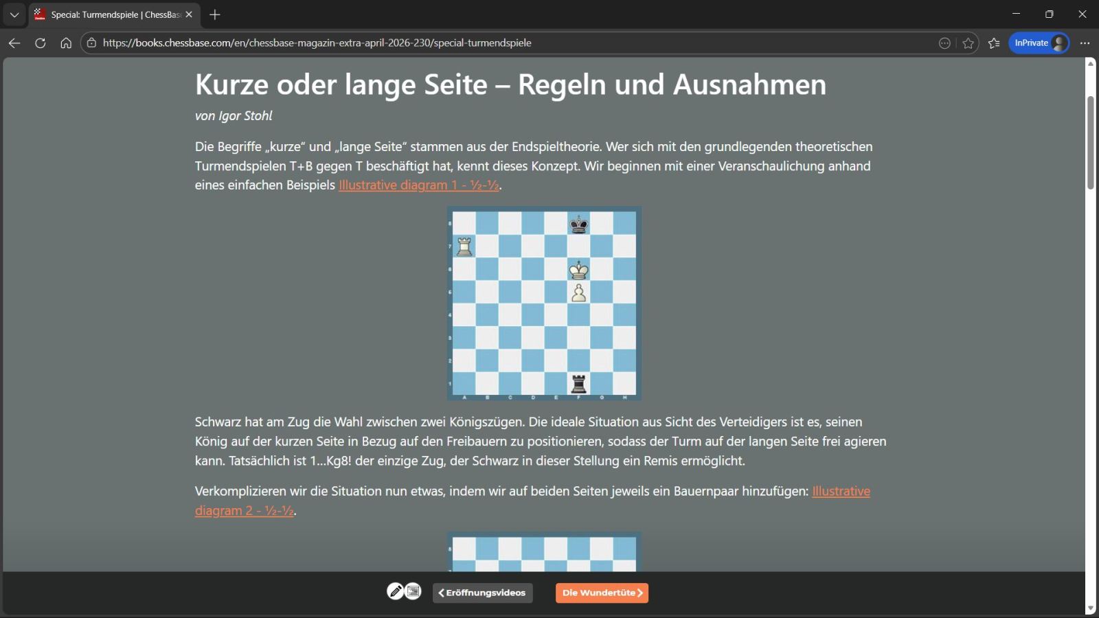 Wohin gehört der verteidigende König im Turmendspiel? Igor Stohl erläutert die grundlegende Regel anhand eines einfachen Beispiels mit Turm und Bauer gegen Turm und geht von dort aus zu kniffligeren Fällen mit Turm + zwei Bauern gegen Turm + zwei Bauern über.