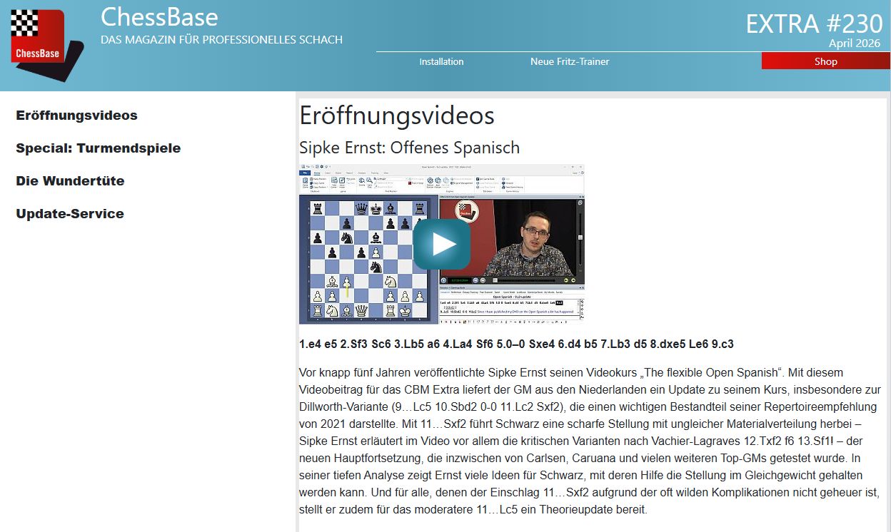 Zusätzlich zum Download für Ihr ChessBase-Programm können Sie das neue Extra auch direkt über Ihren Webbrowser laden.