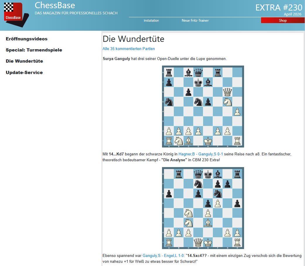 Das Extra #230 liefert in der „Wundertüte“ 35 kommentierte Partien aus verschiedensten Turnieren.