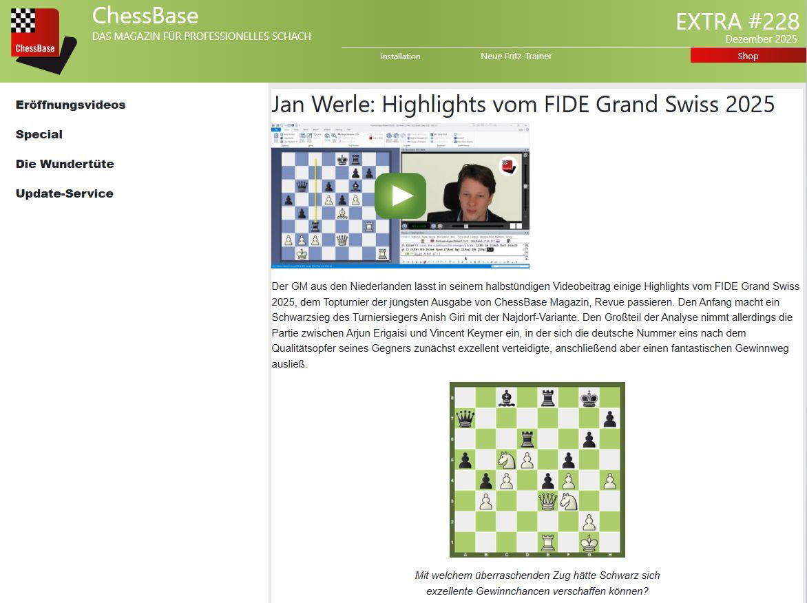 Alternativ zum Download für Ihr ChessBase-Programm können Sie die neue Ausgabe auch direkt über Ihren Webbrowser laden.
