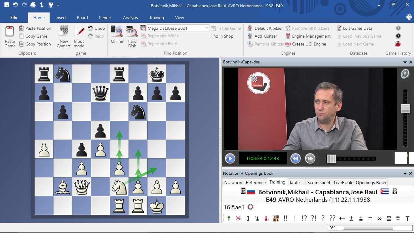 Der Deutsche Bundestrainer ist froh, Ihnen diesmal eine „sehr klassische“ Partie demonstrieren zu können: die Partie Botwinnik-Capablanca vom AVRO-Turnier 1938 ist zwar in erster Linie dank ihres Finales berühmt geworden. Doch Dorian Rogozenco erläutert, dass bereits der Plan Botwinniks in der Rubinstein-Variante der Nimzoindischen Verteidigung nicht nur sehr lehrreich, sondern selbst längst zu einem Strategieklassiker aufgestiegen ist!