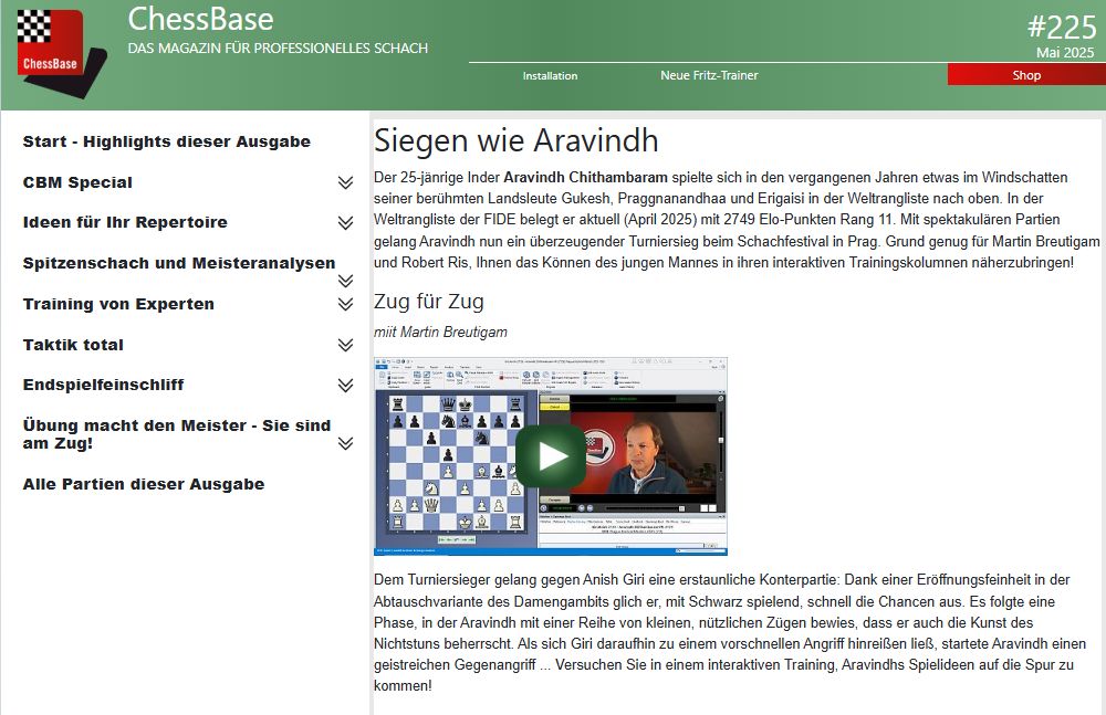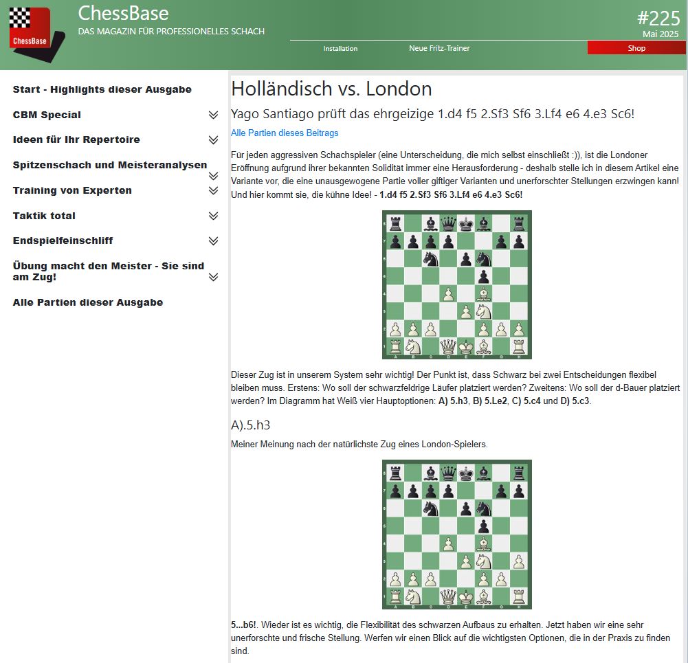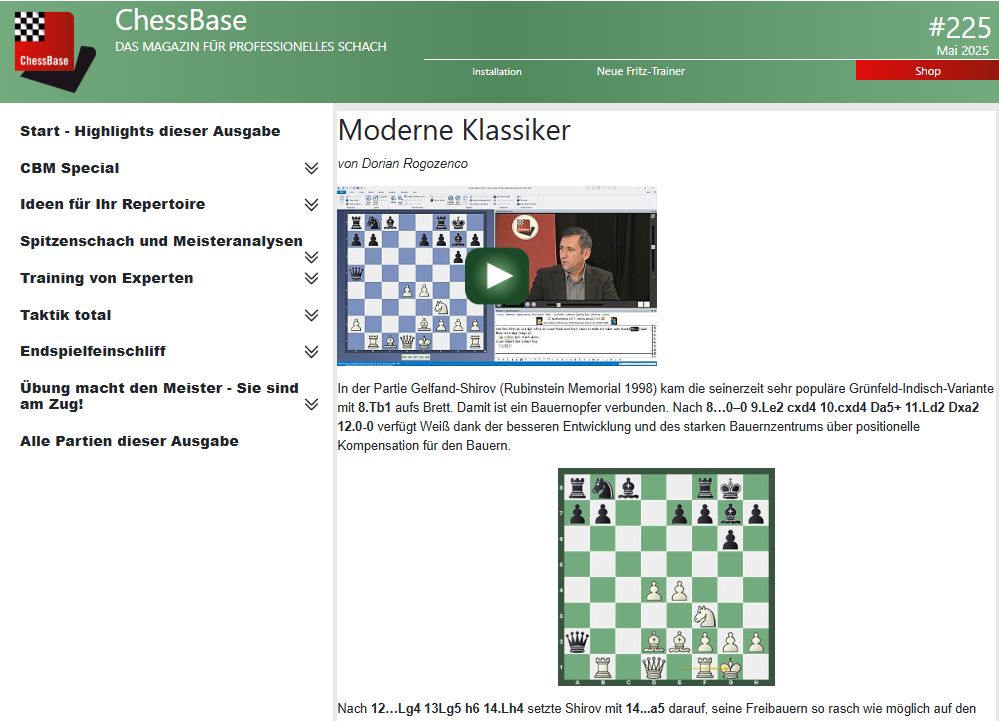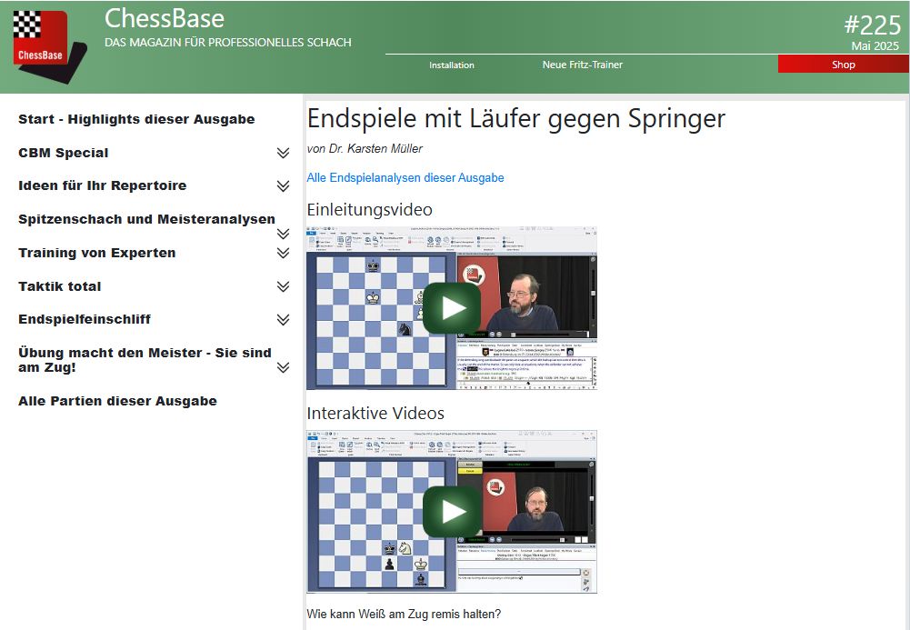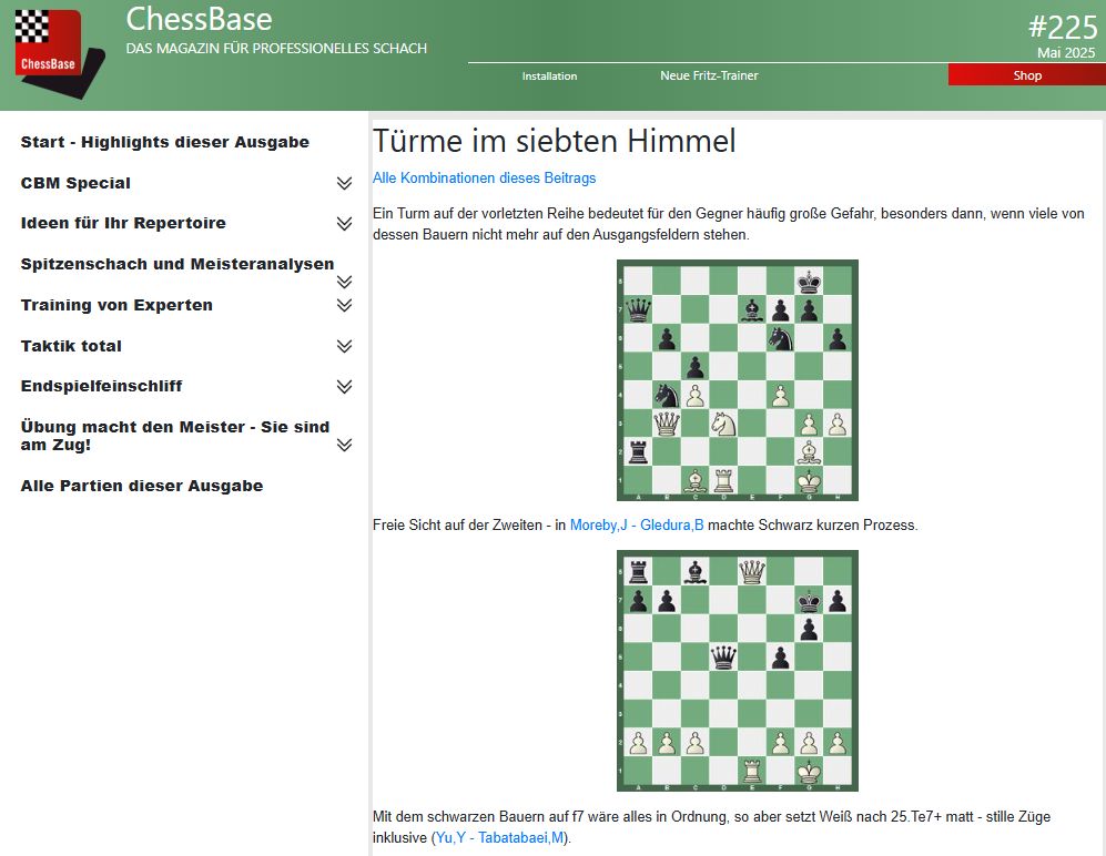Vom Schachfestival Prag 2025 über Jan Werles Eröffnungsvideo zum Londoner System und das "Special" mit 27 höchst unterhaltsamen Miniaturen und Mihail Marins Strategiebeitrag "Vorposten auf offenen Linien" bis zu Dr. Karsten Müllers Videoreihe "Endspiel Basiswissen".