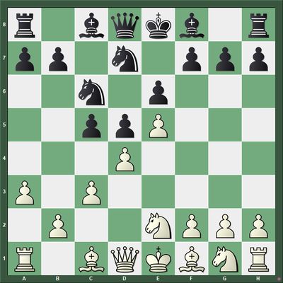 Ris :"7.a3!? führt zu einer faszinierenden und komplizierten Mittelspielschlacht, in der Weiß versucht, dank seines Raumvorteils im Zentrum Angriffschancen aufzubauen. In letzter Zeit wurden nicht viele Partien gespielt, aber die Tatsache, dass dieses System sowohl von Gukesh als auch von Carlsen angewandt wurde und dass die Schwarzspieler Ding Liren und Nepomniachtchi in ernsthafte Schwierigkeiten gerieten, zeigt, dass die Dinge nicht so einfach sind."