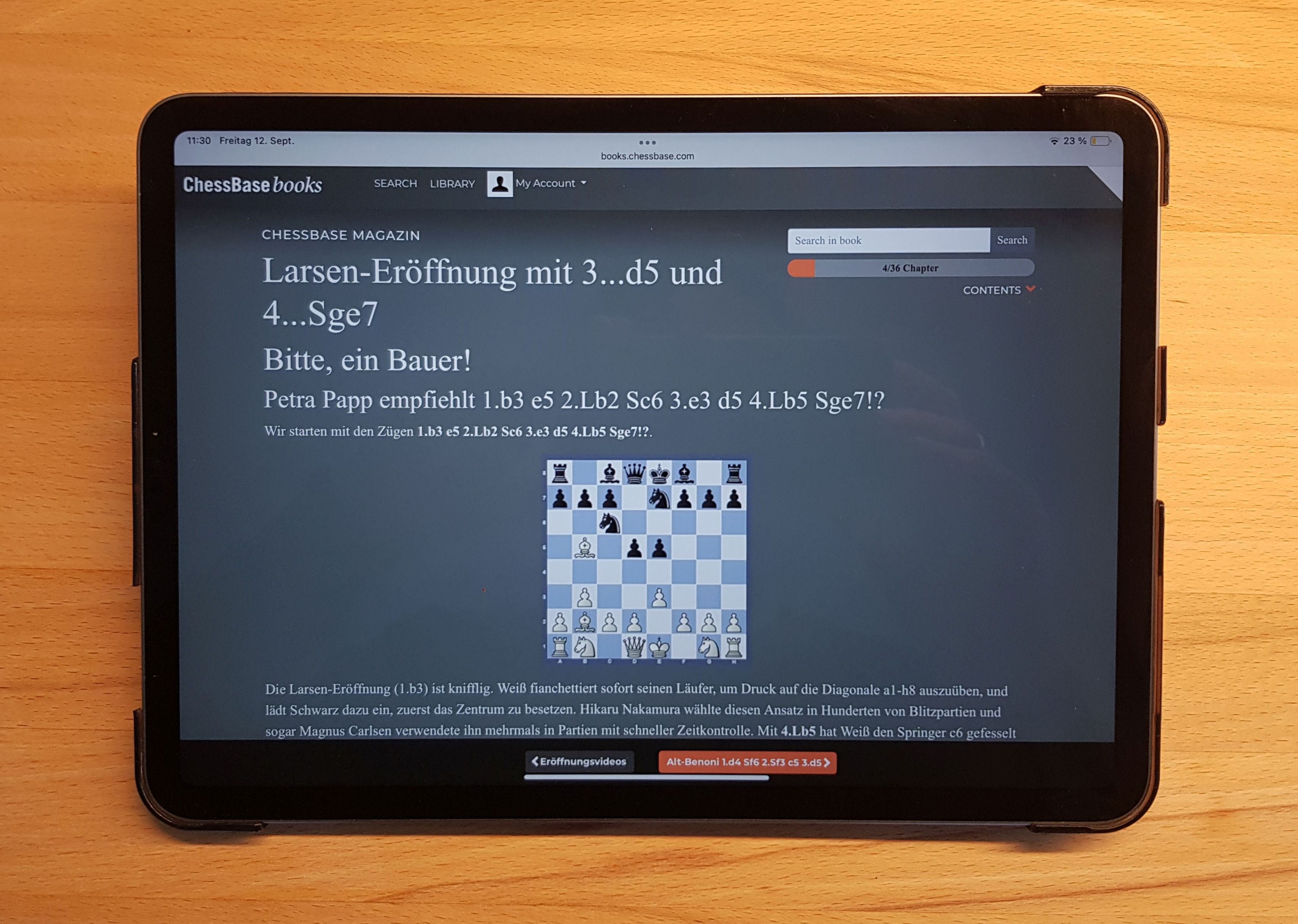 "Die Larsen-Eröffnung (1.b3) ist knifflig. Weiß fianchettiert sofort seinen Läufer, um Druck auf die Diagonale a1-h8 auszuüben, und lädt Schwarz dazu ein, zuerst das Zentrum zu besetzen. Hikaru Nakamura wählte diesen Ansatz in Hunderten von Blitzpartien und sogar Magnus Carlsen verwendete ihn mehrmals in Partien mit schneller Zeitkontrolle. Mit 4.Lb5 hat Weiß den Springer c6 gefesselt und droht, den Bauern auf e5 zu schlagen. Der häufigste Zug ist 4...Ld6, aber mir gefällt 4...Sge7!? sehr gut – Schwarz überdeckt den Springer c6, verhindert die Zerstörung seiner Struktur und bietet ein interessantes Bauernopfer an!