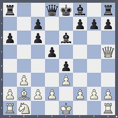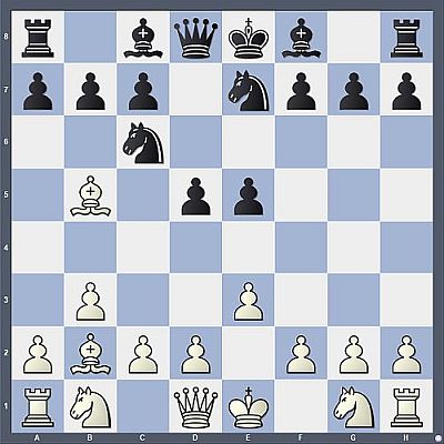 Eine der wichtigsten Tabiyas in dieser Variante. Der weiße Läufer auf b2 ist stark. Schwarz hingegen hat das Läuferpaar und spielt normalerweise ...Ld6 (ohne Angst vor Lxg7), ...0-0 und f7-f6.