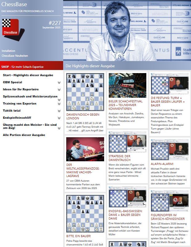 Im Lieferumfang enthalten: CBM #225 als „ChessBase Book“ für iPad, Tablet, Mac etc.! books.chessbase.com