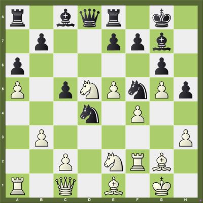 Das erste Beispiel aus seinem Videobeitrag stammt aus der Partie zwischen Karsten Müller und Zurab Azmaiparashvili (2003), und es handelt sich um eine sehr komplexe Stellung, in der bislang erst ein Bauernpaar vom Brett getauscht wurde:
