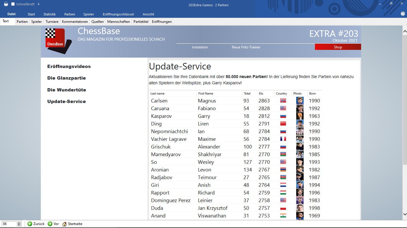 Und last but not least: der Update-Service liefert über 50.000 neue Partien für Ihre Datenbank.