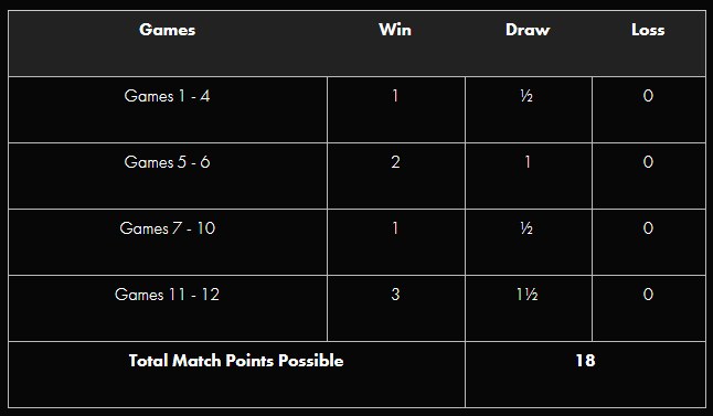 Das Viererturnier wird im K.o.-Modus gespielt. Dabei werden zwölf Partien ausgetragen, die aber - und das ist neu - unterschiedlich gewertet werden. Die Partien 1-4 und die Partien 7-10 werden traditionell gewertet. Zwischendrin gibt es aber Partien, in denen die Spieler Bonuspunkte und Bonusprämien bekommen können, das sind die Partien 5,6,11, und 12. Die Partien 5 und 6 werden mit 2 Punkten für einen Sieg gewertet, die Partien 11 und 12 sogar mit 3 Punkten.