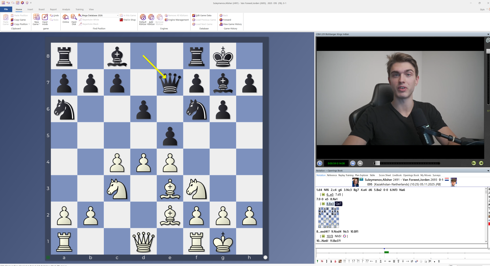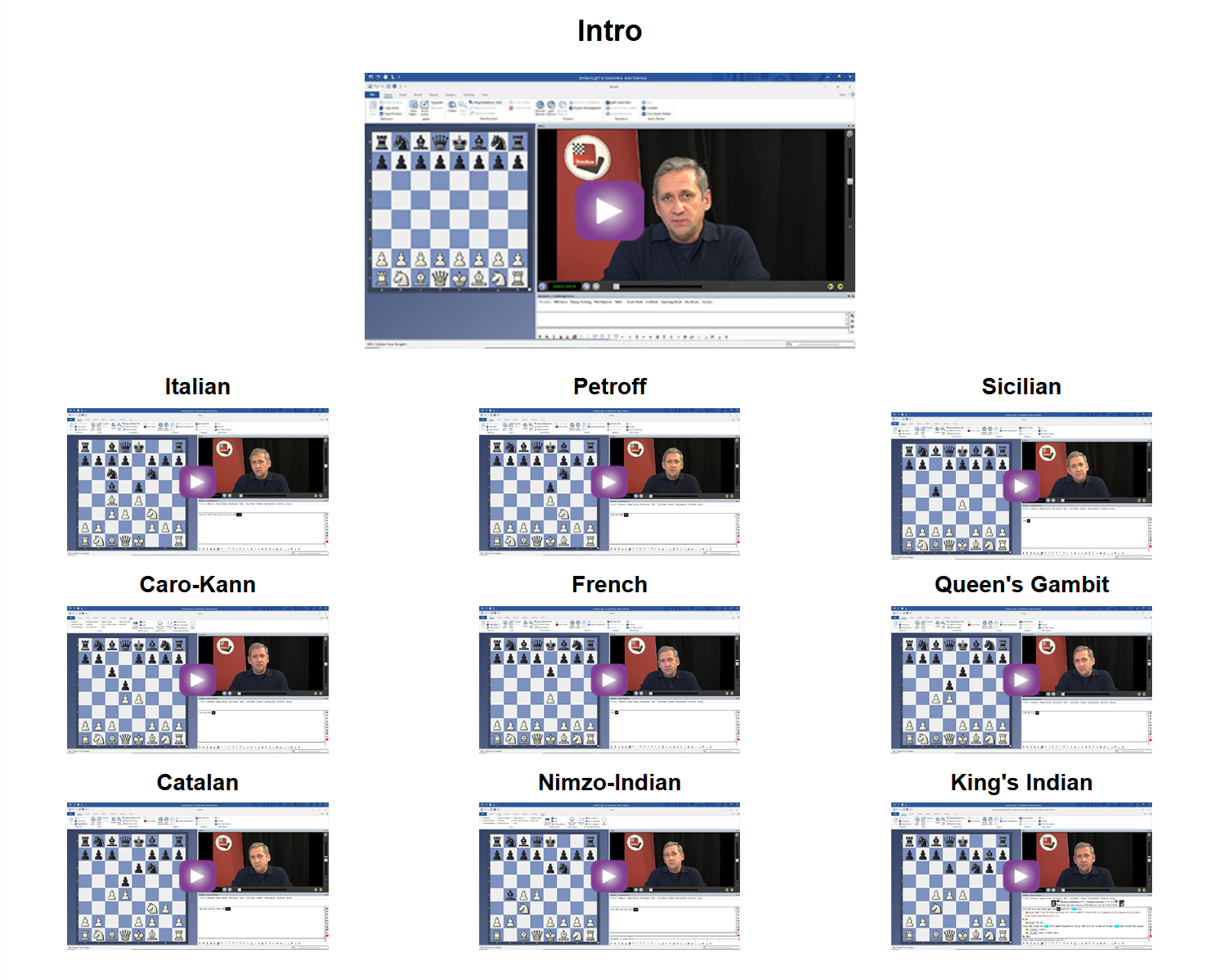 In 100 Videos vermitteln renommierte Großmeister ihr Eröffnungswissen – zum Beispiel Felix Blohberger mit Königsindisch 5.Sf3 0–0 6.Le2 Sa6, einer soliden und zugleich ambitionierten Nebenvariante.