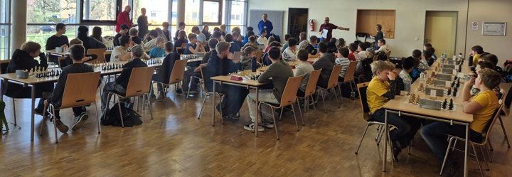 Kleinen Saal des Hauses das Jugendturnier für die Altersklasse U14 ausgetragen. Dort werden fünf Runden Schweizer System mit 75 Minuten für 30 Züge plus 30 Sekunden Bonus gespielt. Neben Pokalen für die ersten drei Plätze sind Urkunden und Sachpreise für alle Teilnehmer vorgesehen.