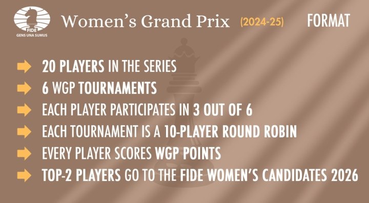 Der FIDE Women's Grand Prix ist eine Turnierserie ausschließlich für Spielerinnen, von denen sich die beiden besten für das Kandidatenturnier qualifizieren. Die Serie 2024-25 wird nach Beratungen zwischen der FIDE und namhaften Spielerinnen mehrere bemerkenswerte Änderungen am Format vornehmen. Diese Änderungen sollen mehr Möglichkeiten und günstigere Bedingungen für Frauen im Schach bieten.