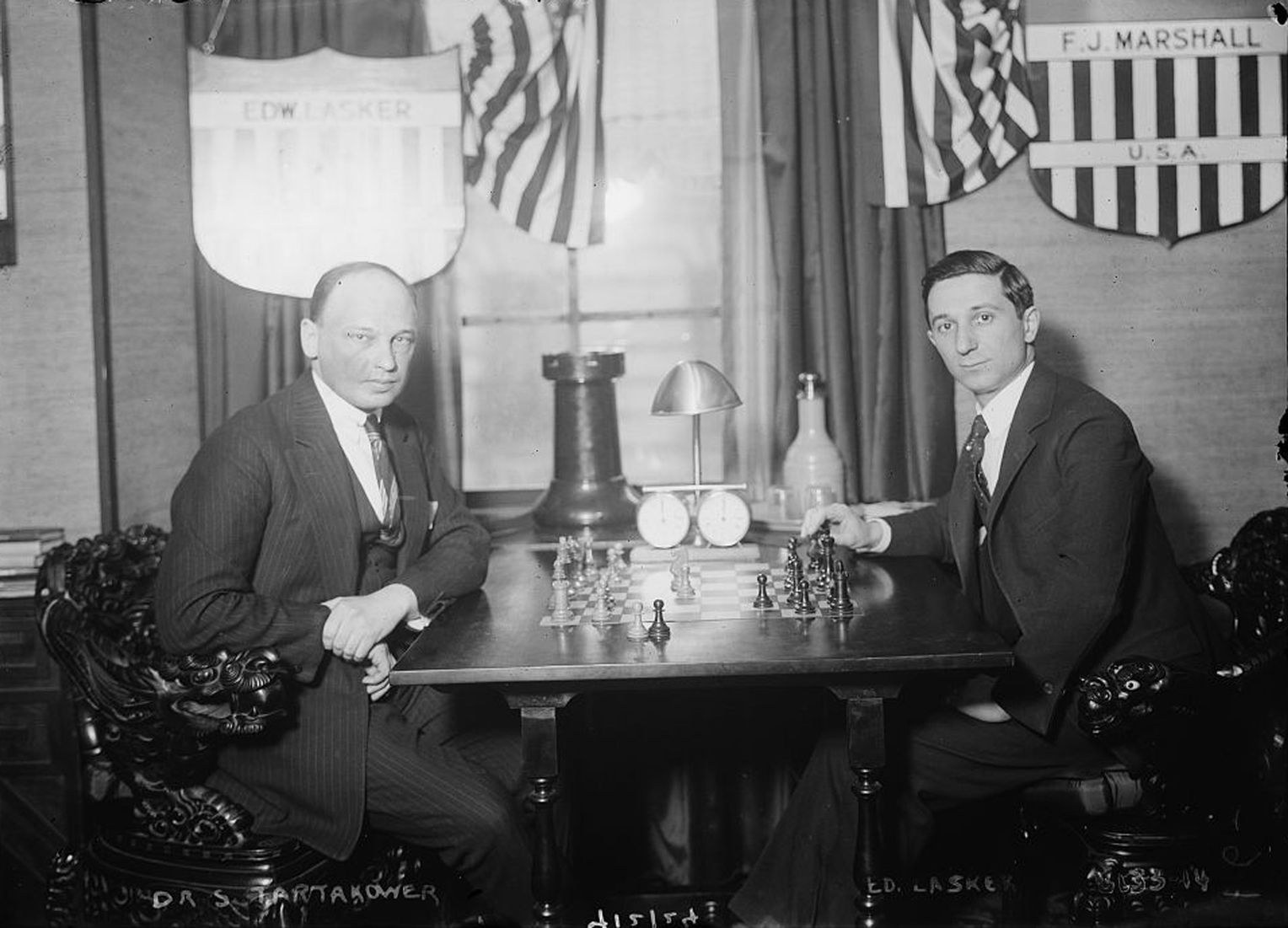 Ein Foto aus der 8. Runde, als Doktor Tartakower gegen Edward Lasker noch ein Remis erreicht hatte
