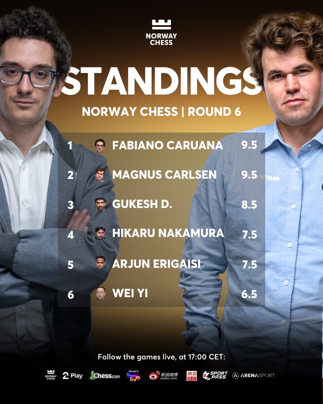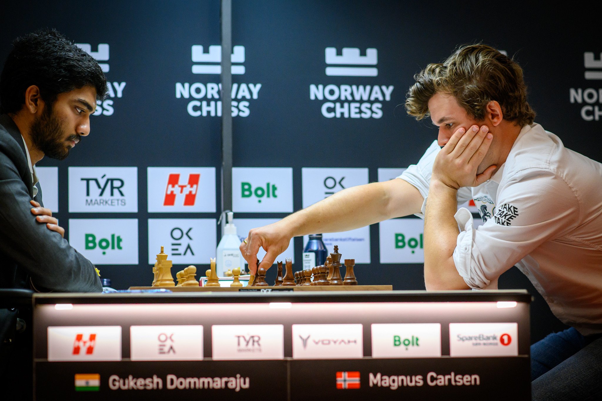 Am Sonntag begann in Stavanger mit der sechsten Runde der zweite Umgang des Norway Chess Turniers. Zum zweiten Mal trafen der amtierende Weltmeister Gukesh und der Weltranglistenerste Magnsu Carlsen aufeinander. Die erste Begegnung hatte Magnus Carlsen für sich entschieden und auch im zweiten Aufeinandertreffen sah es wieder nach diesem Ergebnis aus. In einer typischen Struktur der Spanischen Anti-Berliner Variante übernahm Carlsen mit den schwarzen Steinen im Verlauf des Mittelspiels mit einigen entschlossenen Zügen die Initiative, brachte seine Steine in gute Positionen und entwickelte starken Druck im Zentrum und vor dem weißen König. Bei beiderseitig knapper Bedenkzeit wurde Carlsens anfangs riesiger Vorteil zwar etwas kleiner, sollte aber zum Gewinn der Partie ausreichen.