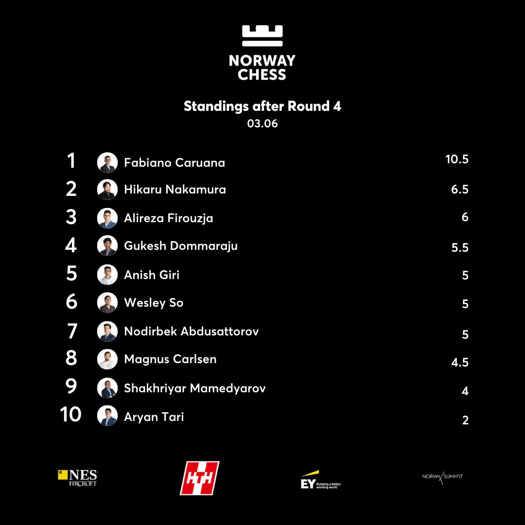 Caruana (2787.9) becomes World #2 after beating Firouzja with Black in Round 4 #NorwayChess. The last time Fabiano was #2 in October 2021 on the FIDE official rating list. https://t.co/pc5BhhY8wt pic.twitter.com/iJAOZB3RlP