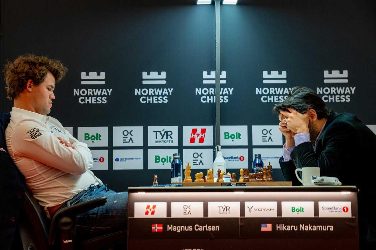 Runde sieben des Norway Chess sah die Wiederholung des Begegnung des Weltranglistenersten Magnus Carlsen gegen den Zweiten Hikaru Nakamura. Carlsen fühlte sich an diesem Tag jedoch wenig motiviert, wie er im Interview nach der klassischen Partie erklärte, und spielte nur eine kurze Remispartie gegen Nakamura. In der Armagaddon-Verlängerung sah das anders aus. Carlsen spielte ein ehrgeiziges Katalanisches Gambit und gewann die Partie.