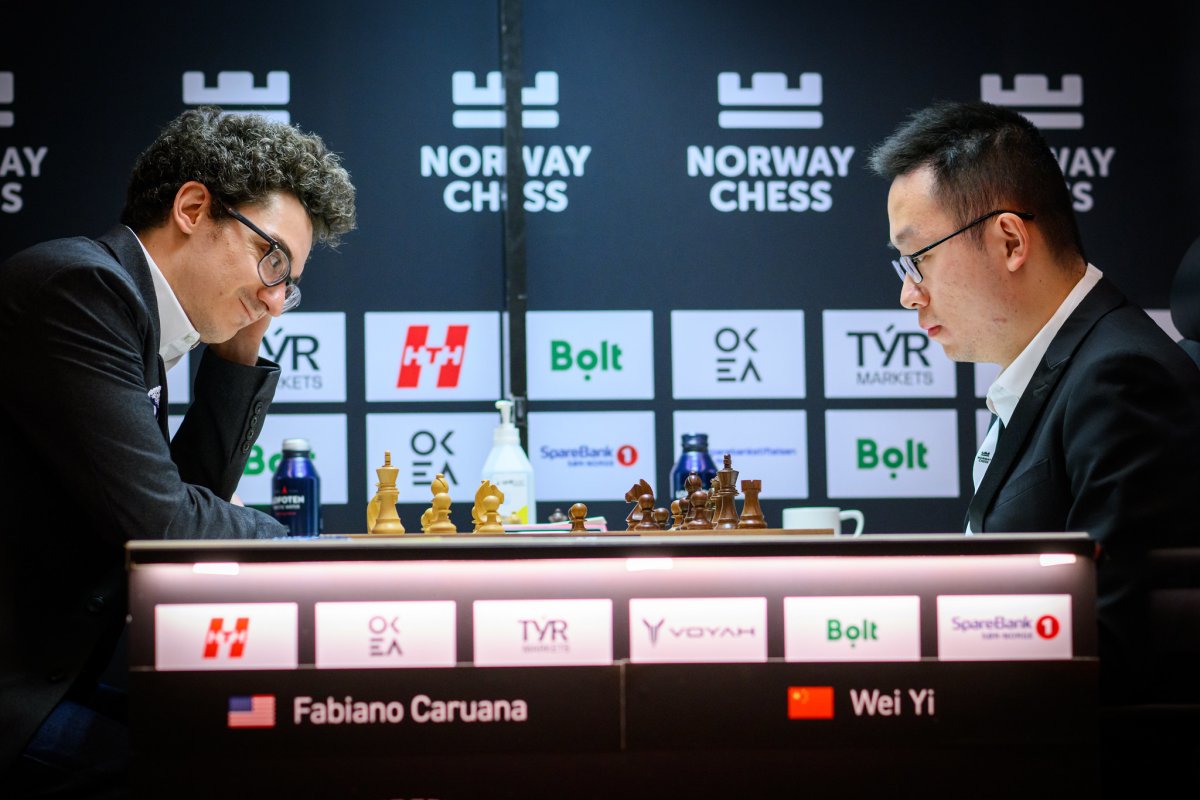 Die beiden anderen Duelle wurden jedoch schon bei langer Bedenkzeit entschieden. Fabiano Caruana gewann mit Weiß gegen Wei Yi einen etwas experimentellen Königsindischen Angriff. Im Mittelspiel hatte Caruana auf der c-Linie einen Bauern gewonnen und sicherte mit dem frei gewordenen b-Bauern den Sieg.