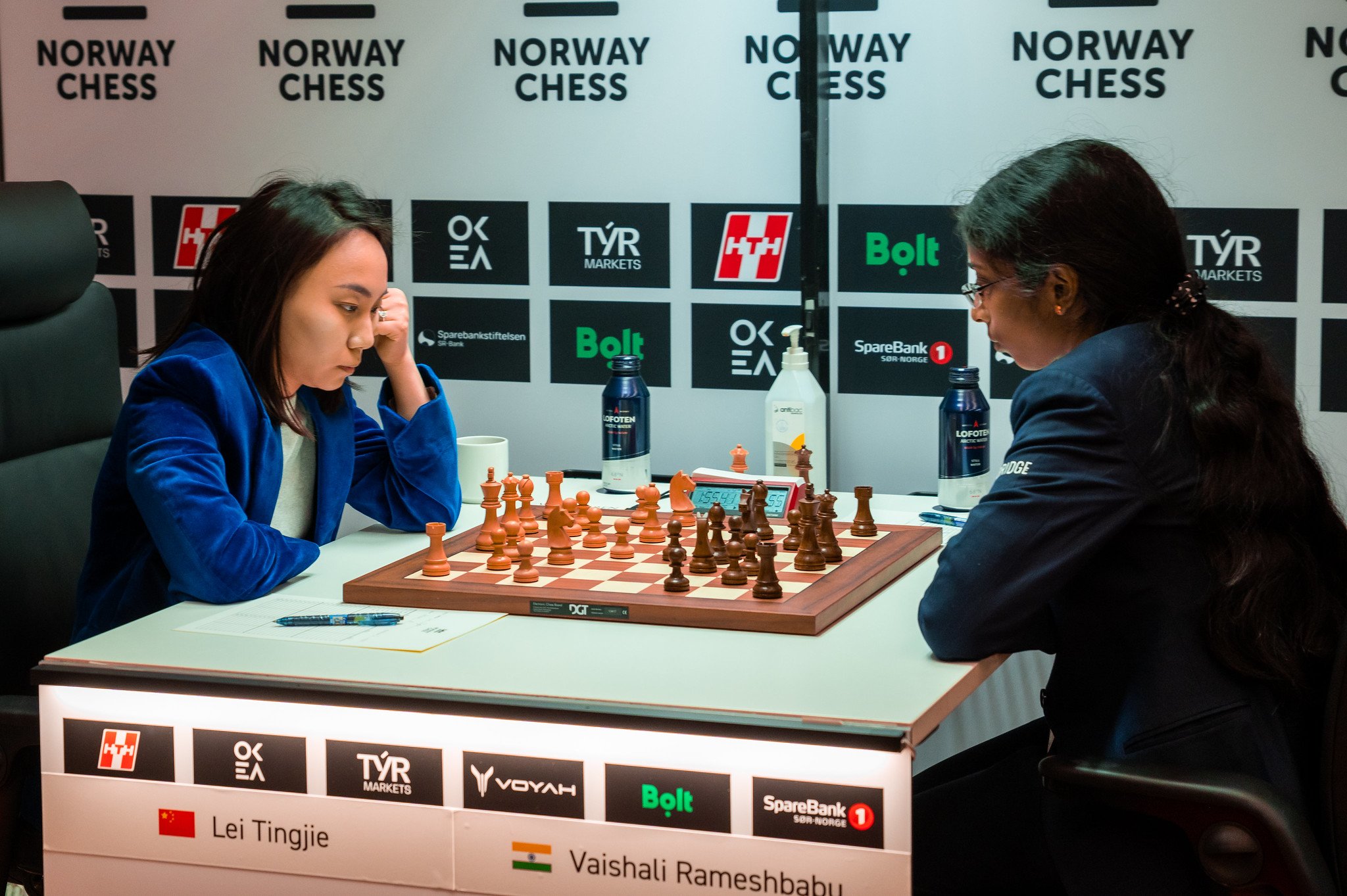 Auch Lei Tingjie führte die weißen Steine zum Sieg. Eine Italienische Partie gegen Vaishali war lange ausgeglichen. Im Endspiel profitierte die Chinesin erst von der besseren Bauernstruktur und hatte dann mit einem Läufer gegen einen schwarzen Springer die bessere Leichtfigur.
