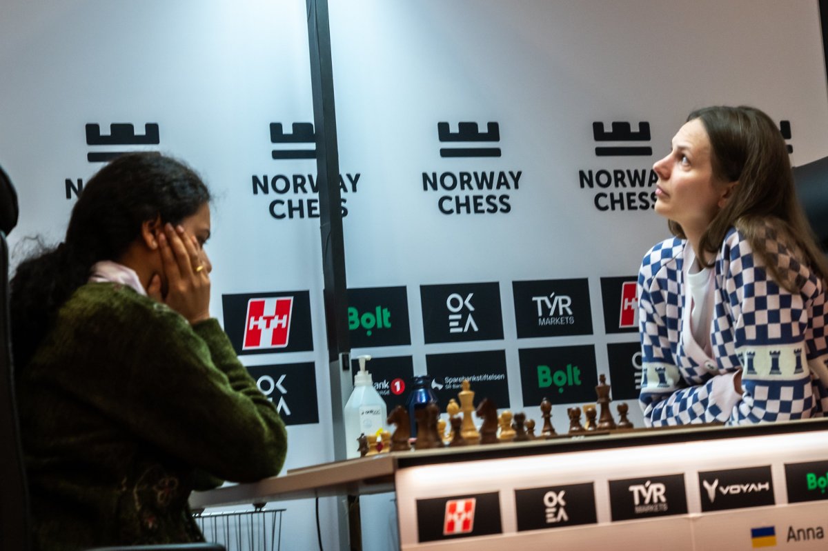 Humpy Koneru und Anna Muzychuk spielten ihre beiden Partien remis. Die zweite Partie war die Armageddon-Partie und da Muzychuk mit Schwarz spielte reichte dies für einen Extrapunkt.