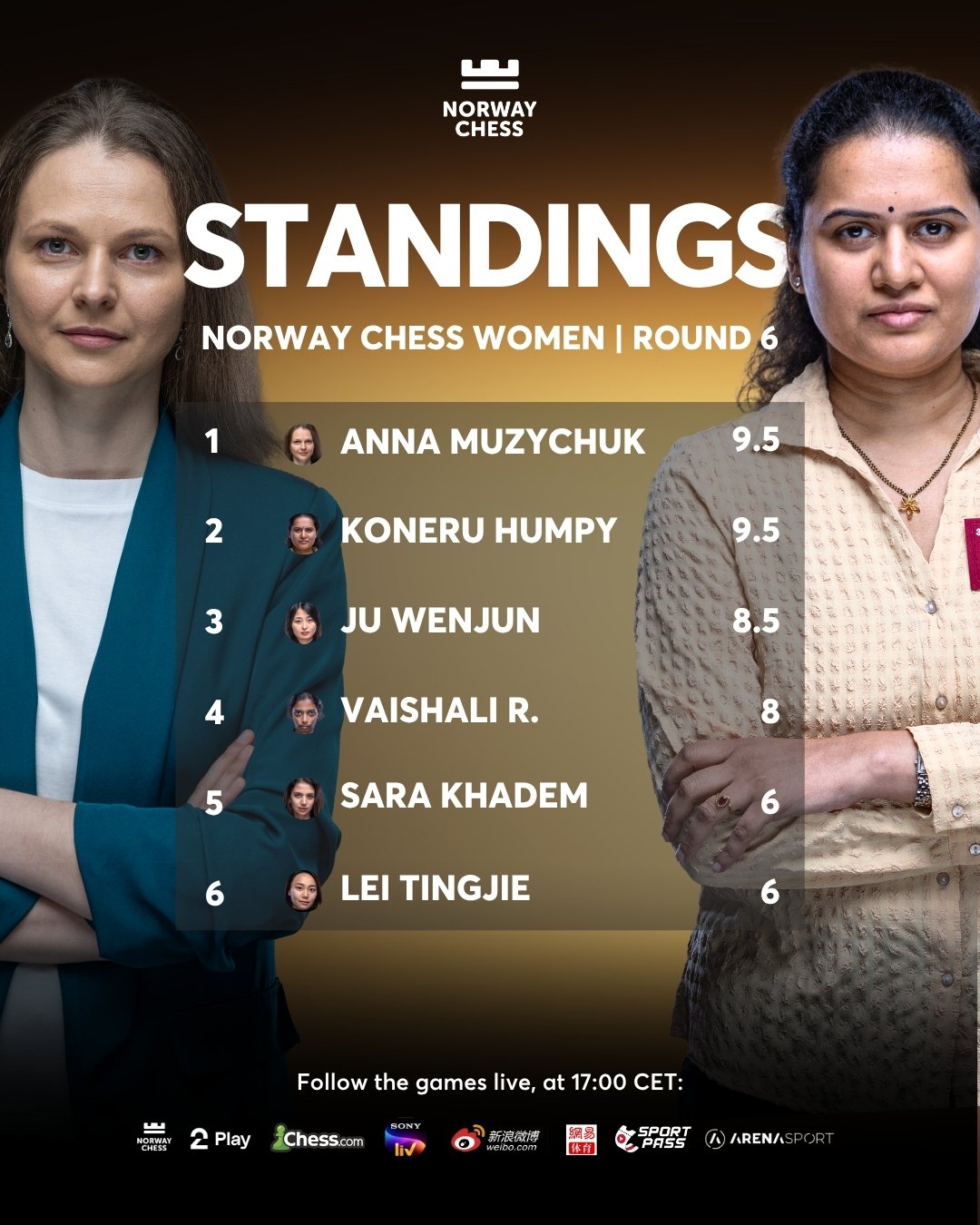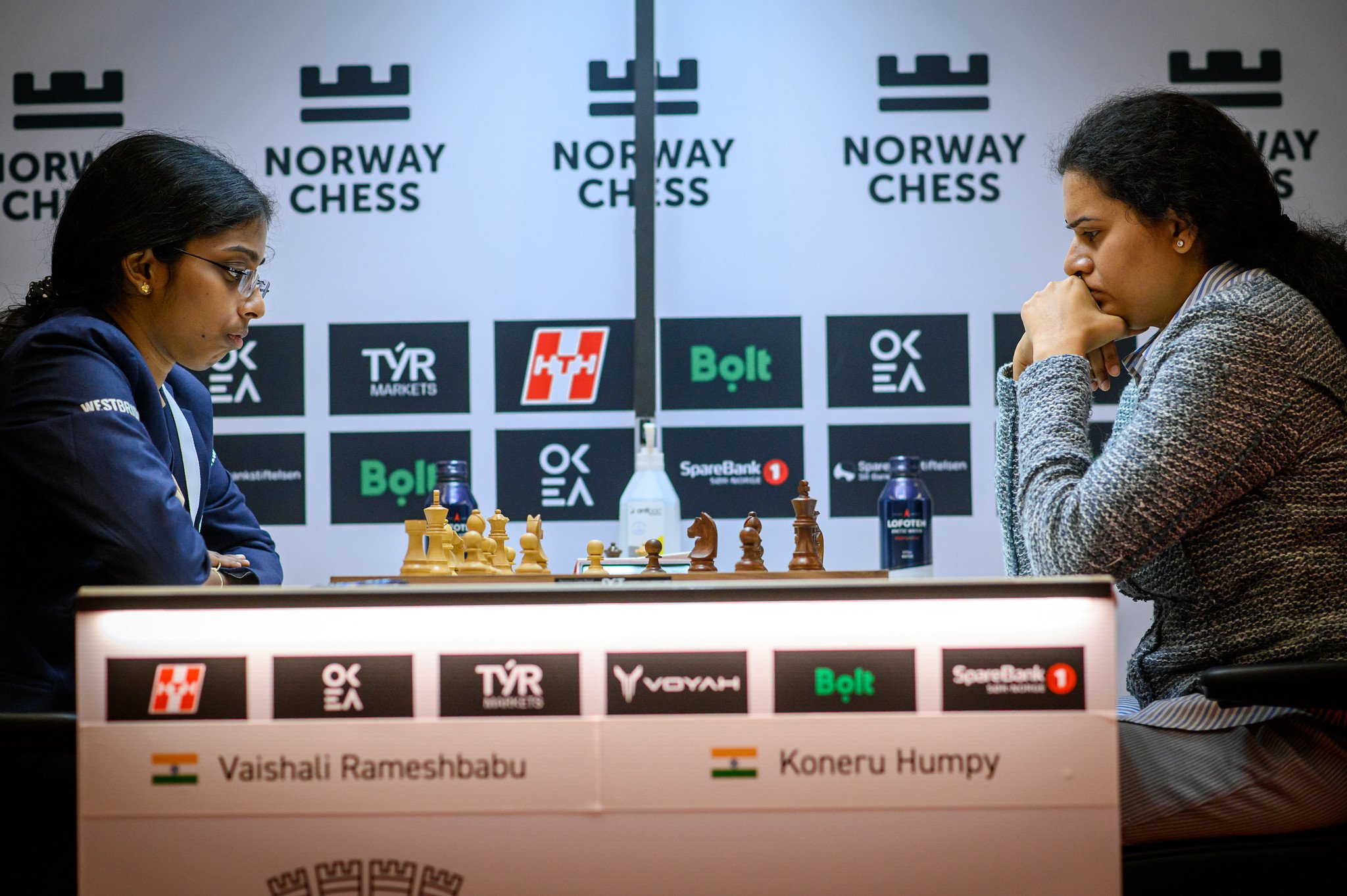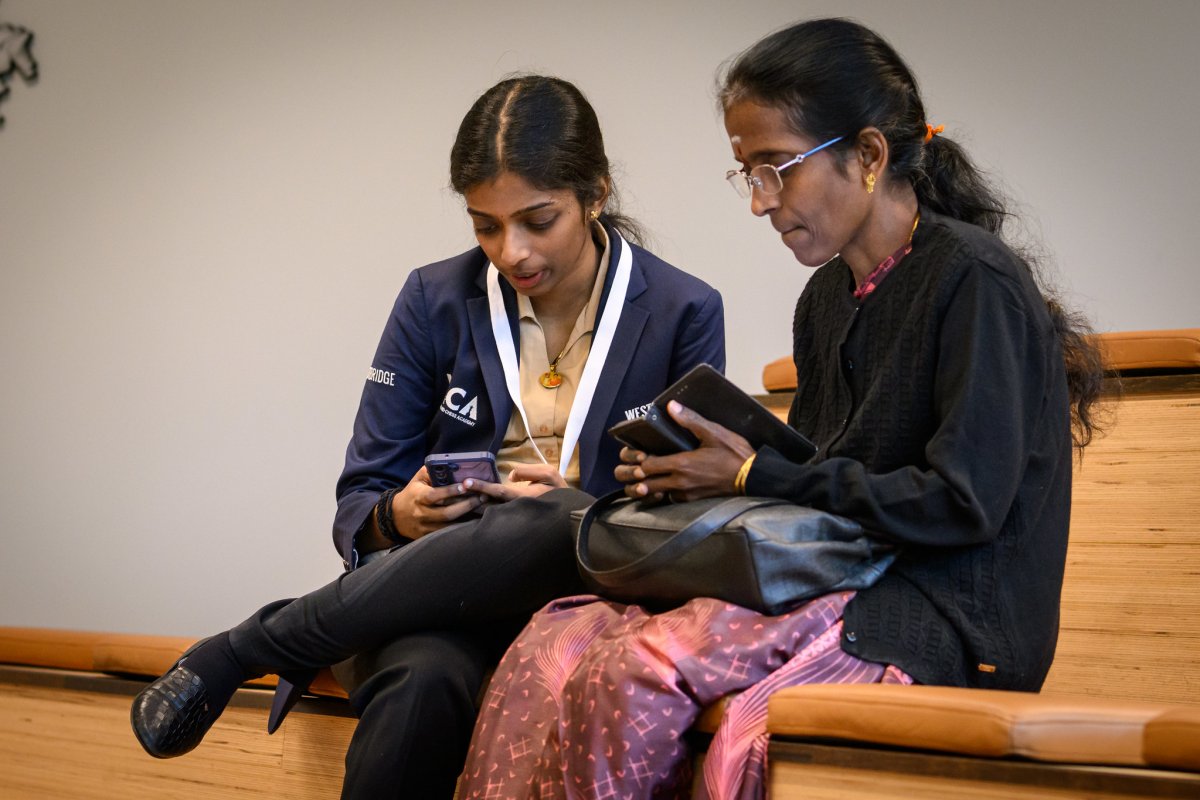 Vaishali und Humpy Koneru lieferten sich nach Katalanischer Eröffnung eine deutlich längere Partie, in der aber ebenfalls in einem Schwerfigurenendspiel bei noch mehr verzahnten Bauernketten für keine Seite etwas zu holen war.