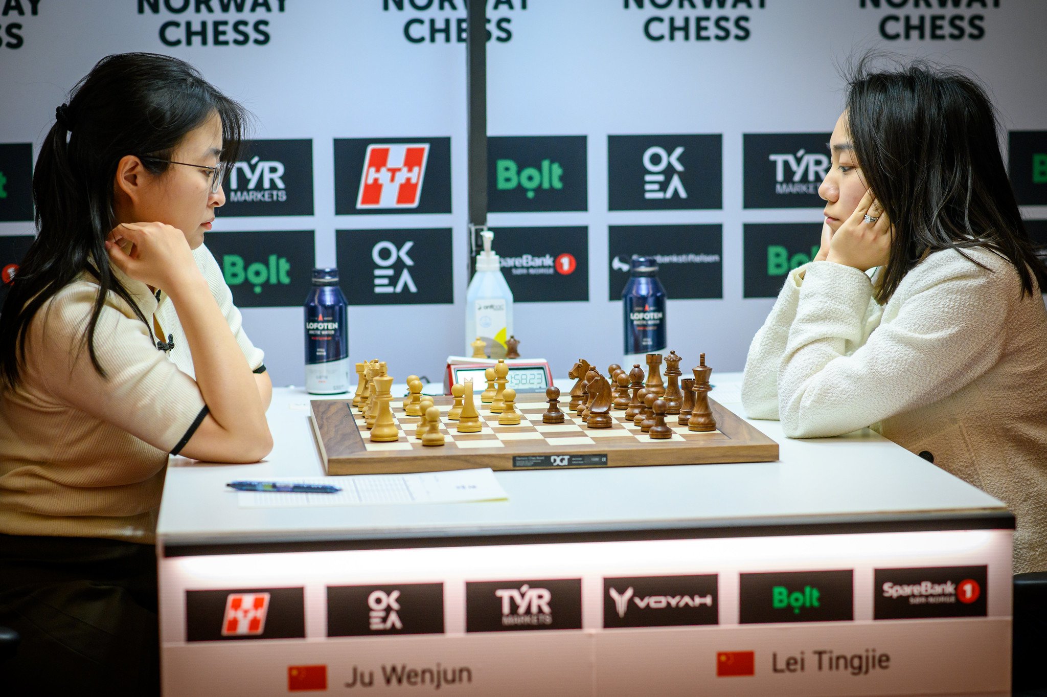 Zum Auftakt des zweiten Umgangs beim Norway Women's Chess endeten alle drei klassischen Partien ohne Entscheidung. Ju Wenjun und Lei Tingjie hatten im Italienischen Giuocco Piano eine recht kurze Partie gespielt, die schon bald nach dem 20sten Zug mit einer nicht unbedingt erzwungenen dreifachen Stellungswiederholung remis endete.